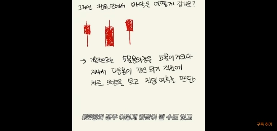 5분이 다 지나서 다음봉이 갱신되기 직전에 차트모양을 보고 진입여부를 판단한다