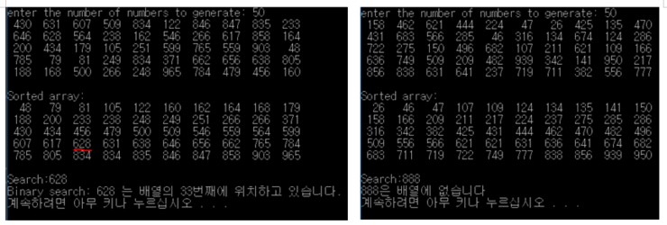 다시 메인함수로 돌아와서 선택정렬이 완료된 후 찾고 싶은 숫자를 입력받는다.
