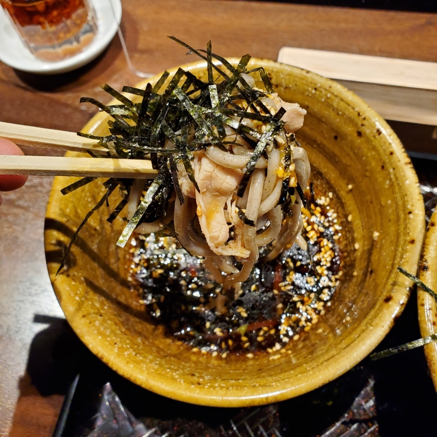 잠시 기다리니 엄청난 양의 소바가 나왔다. 왼쪽이 라유스프로 소바를 한젓가락씩 집어 찍어먹는다. 면이 생각 이상으로 두껍고 탱글탱글하여 씹히는 맛이 좋다. 그리고 라유를 왜넣냐고? 그냥 맛있음..